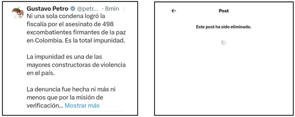 Según la Fiscalía, las cifras proporcionadas por Gustavo Petro no corresponden a los datos del informe trimestral presentado por la Misión de la ONU en Colombia. Además, destacaron que el presidente Petro, al percatarse de la falsedad, eliminó su mensaje.