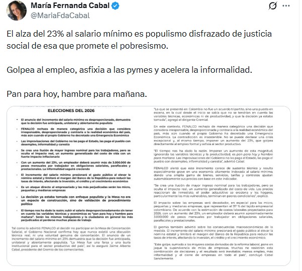 Luego de que se conociera que el salario mínimo para 2026 quedó en 2.000.000 de pesos a partir del primero de enero, las reacciones no se hicieron esperar entre políticos, economistas y representantes de gremios empresariales.