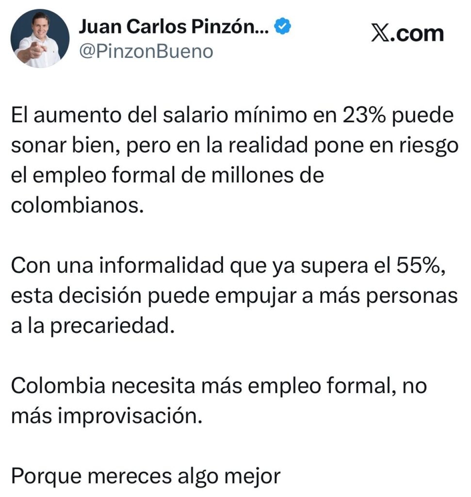 El economista y exministro José Manuel Restrepo también mostró su preocupación por el incremento, que tildó de populista y que significa un perjuicio para todos.
