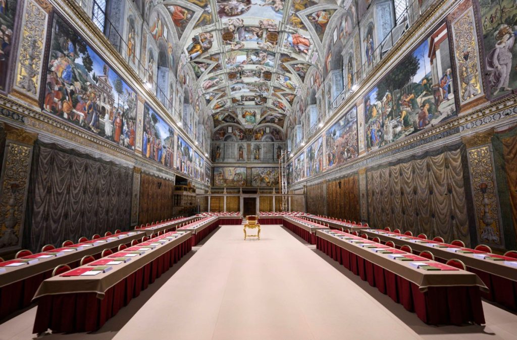 El cónclave, uno de los procesos más secretos y tradicionales de la Iglesia católica, se inició en la Capilla Sixtina, bajo los frescos del Juicio Final de Miguel Ángel. La imponente sala ha sido preparada con hileras de mesas cubiertas con telas marrones y rojas, donde los nombres de cada elector están cuidadosamente dispuestos.