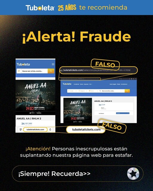 El sistema de ticketing más importante en Colombia, TuBoleta, se encuentra en alerta por el aumento de la circulación de páginas falsas que están suplantando dicha marca.