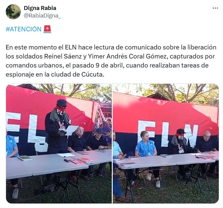 Según la información oficial, los militares fueron entregados a una comisión humanitaria de Naciones Unidas, que gestionó su liberación tras semanas de mediación con el grupo insurgente. En un video difundido en redes sociales, integrantes del Ejército de Liberación Nacional (Eln) reconocieron la autoría del secuestro y anunciaron que los uniformados fueron devueltos “gracias a los buenos oficios de la comisión humanitaria habilitada para la liberación, se entregan sanos y salvos los dos militares”.