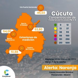 Según el último informe de la Corporación Autónoma Regional de la Frontera Nororiental (Corponor), los niveles de material particulado PM2.5 superaron el límite permitido en todas las estaciones de monitoreo de la calidad del aire, incluso durante el Día sin Carro y sin Moto.