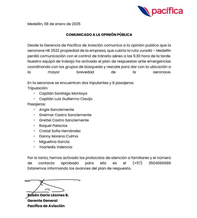 Tras el reporte de la desaparición, la Aeronáutica Civil activó los protocolos de búsqueda y rescate (SAR) establecidos para este tipo de emergencias. En un comunicado oficial, la entidad afirmó que los esfuerzos están orientados a localizar la aeronave y salvaguardar la integridad de sus ocupantes.