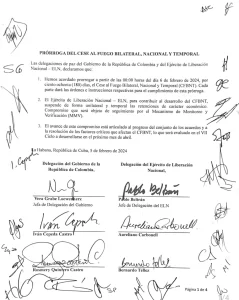 La Mesa de Diálogos para la Paz entre el Gobierno de Colombia y el Ejército de Liberación Nacional – ELN han acordado prorrogar el cese al fuego bilateral, nacional y temporal durante 180 días. Consulta el documento: pic.twitter.com/j6shfYQ8qP