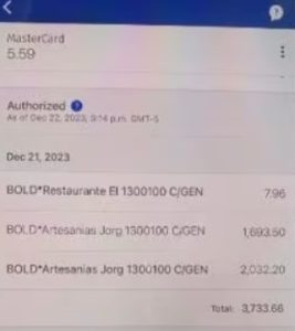 Cada tarjeta fue pasada por el datáfono, por supuestos problemas con internet que impedían que se efectuará el cobro. A cambio la mujer no recibió ningún comprobante que certificará el estatus de la operación. Posteriormente, la mujer recibió de vuelta sus tarjetas y dio el paseo. Al día siguiente se dio cuenta del escandaloso cobro cuando revisó sus estractos bancarios.