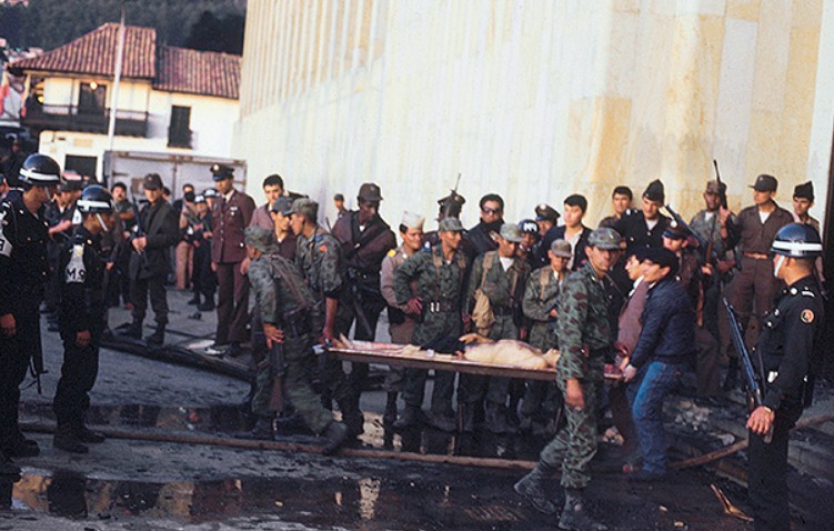 A las 11:35 de la mañana del 6 de noviembre, un comando de 35 guerrilleros del M-19 irrumpió en el Palacio de Justicia en el centro de Bogotá. Exigían el cumplimiento de los acuerdos de paz de 1984 y pretendían someter a juicio político al entonces presidente Belisario Betancur. El asalto desató una ofensiva militar que redujo el edificio a ruinas tras un voraz incendio durante la noche.