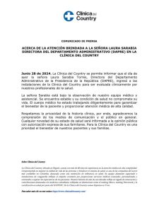Pese a las declaraciones del presidente respecto a que Sarabia estaba en cuidados intensivos, la Clínica del Country emitió un comunicado sobre el estado de salud de Laura Sarabia: “La señora Sarabia está bajo la observación de nuestro equipo médico y asistencial. Se encuentra estable y su condición de salud no compromete su vida”.