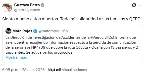 Desde los diferentes sectores políticos hubo manifestaciones de tristeza y pesar por la trágica muerte del representante, destacado por su sabiduría, don de gente y compromiso con la paz.