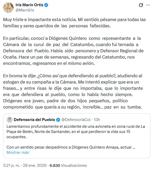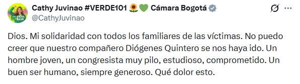 La muerte de Diógenes Quintero genera consternación en Norte de Santander y deja un vacío en la representación política de las comunidades del Catatumbo, que encontraron en él una voz constante en la defensa de la paz, los derechos humanos y el desarrollo territorial.